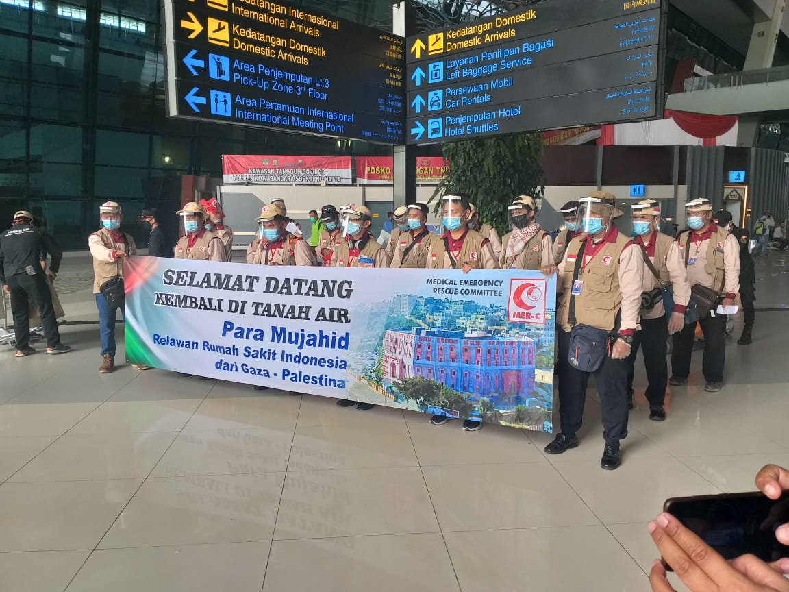 Jakarta, Sebanyak 19 Relawan Pembangunan RS Indonesia di Gaza Pulang ke Tanah Air pada Selasa (19/9/20) sekitar pukul 13.30 WIB. Kepulangan Relawan dari lembaga kemanusiaan Medical Emergency Rescue Committee (MER-C) tersebut telah berada di gaza satu tahun tujuh bulan lamanya.