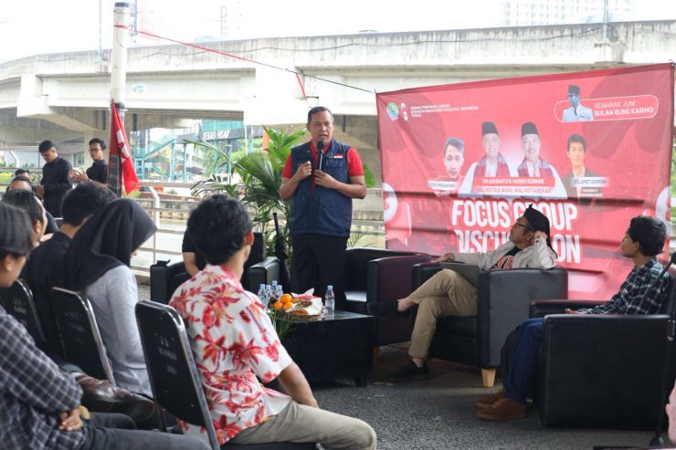 Jakarta, Neropong.com – Suasana berbeda terlihat di bawah Flyover Kalimalang, Wali Kota Bekasi Tri Adhianto hadir dalam diskusi santai bersama kader Gerakan Mahasiswa Nasional Indonesia (GMNI) Kota Bekasi dalam rangka memperingati Bulan Bung Karno.